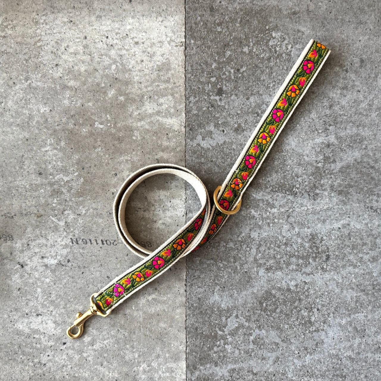 人気のフラワー柄のおしゃれなリード。愛犬の肌に触れる部分にはレーヨンと麻でつくられた肌触り抜群の生地を使用。耐久性が高く、使い込むほどに柔らかく味が出るのが特徴です。