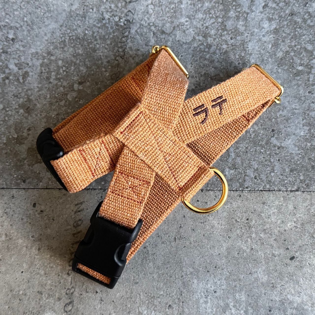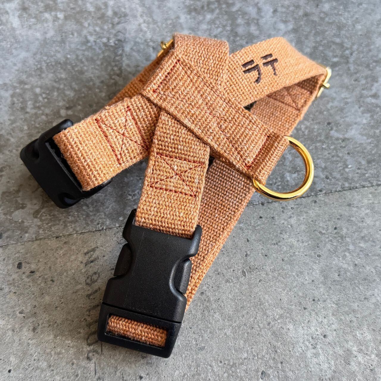 ハーネス ネーム刺繍 Acrylic × Linen light orange 2cm幅 / 2.5cm幅