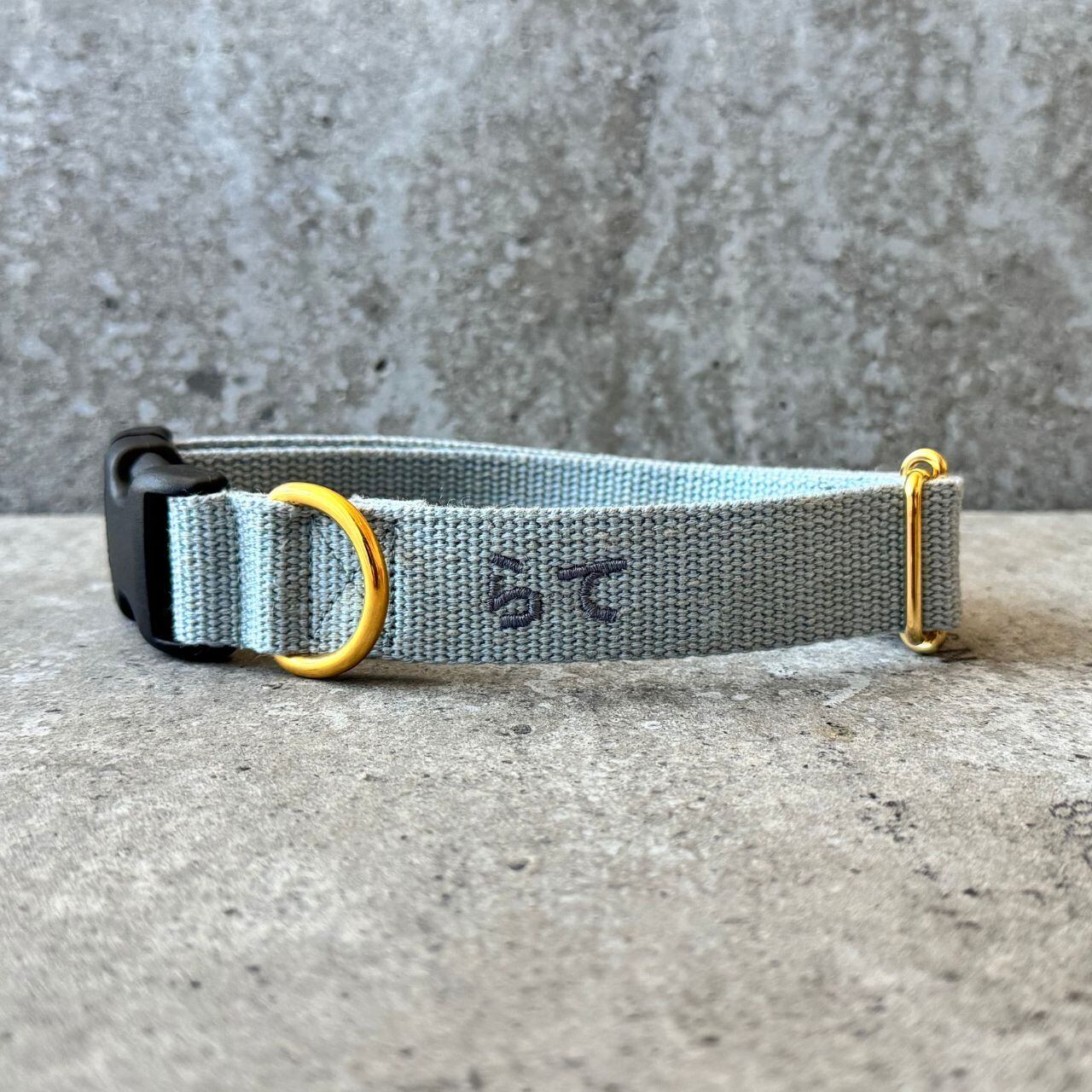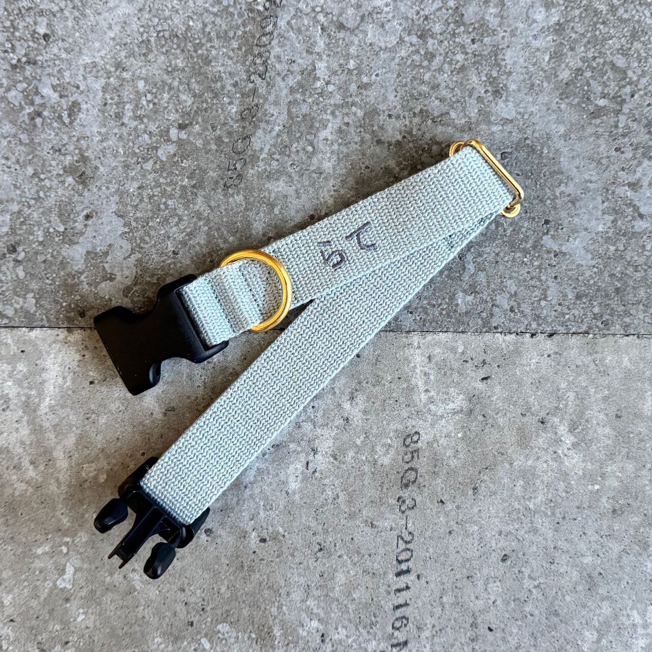 首輪 ネーム刺繍 Acrylic × Linen blue 2cm幅 / 2.5cm幅